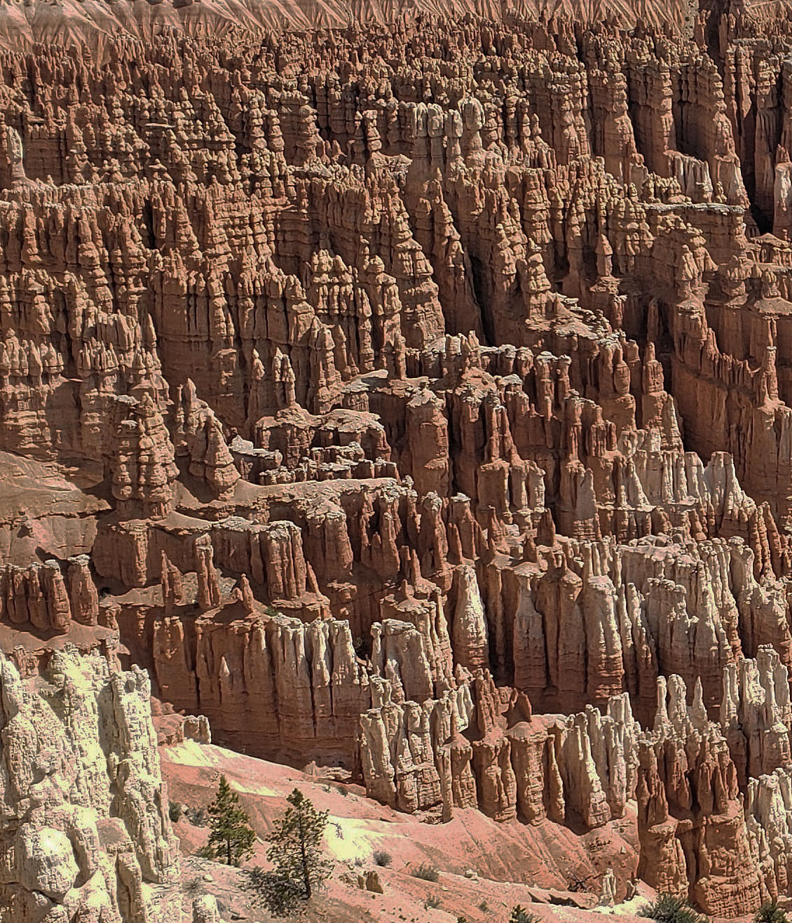 The other day, one of my collectors mentioned that every time he looks at his 100 x 100 cm Woodcut, he admires the 3D effect, being reminded of the tall buildings in New York City, Hongkong or rocks in Bryce Canyon National Park. I think he has a point. Bryce Canyon is known for its unique and bizarre rock formations such as tall spires and so-called Hoodoos, which are the product of erosion. On a side note, the word «hoodoo» means to bewitch, which is what Bryce Canyon’s rock formations surely do. Equally bewitching and attractive to behold are the dried up axe marks, fissures and cracks in old wood.